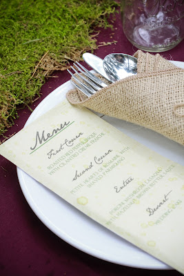 The super rustic-chic menu was designed by Pacific Miles Creations.