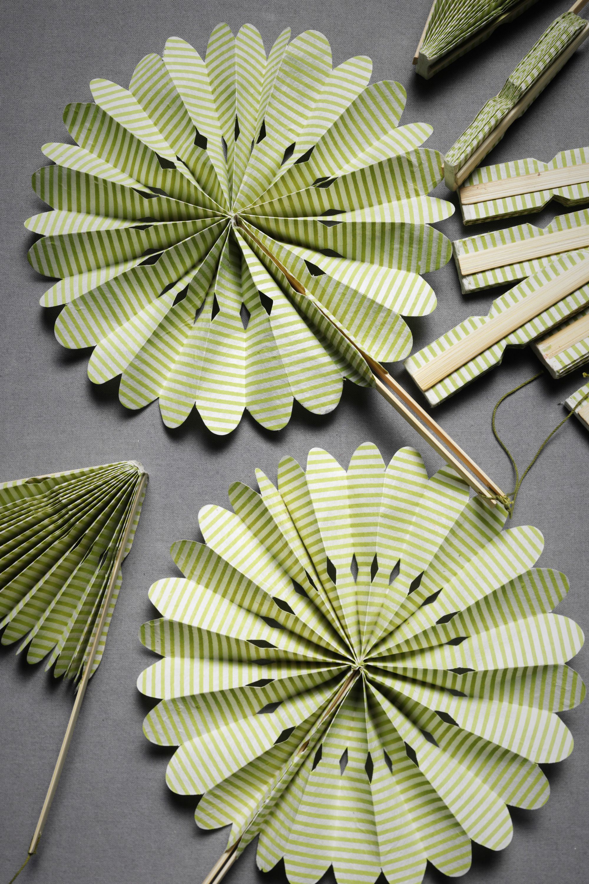 Like these paper fans ($18 for 10), which you can DIY using this tutorial from Ruffled.